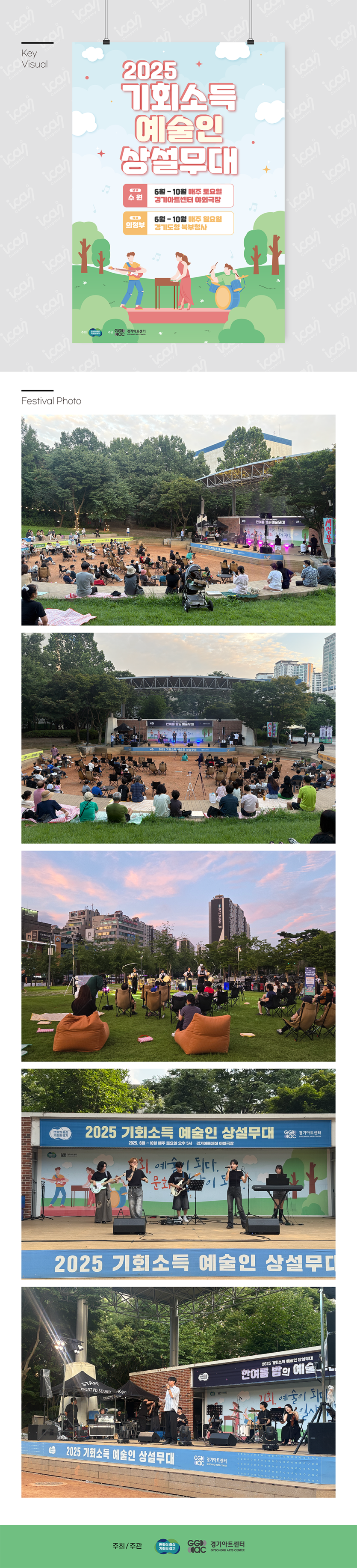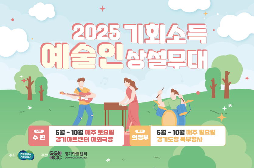 FESTIVAL 2025 기회소득예술인 상설무대 일시 : 2025. 06. ~ 10. 장소 : 경기도 수원특례시 경기아트센터 및 경기도청 페이지 정보 작성자 최고관리자 작성일 25-11-27 15:07 조회 561회 댓글 0건 본문 이전글포천 한탄강 세계드론제전 다음글2025 남원국제드론제전with로봇 목록